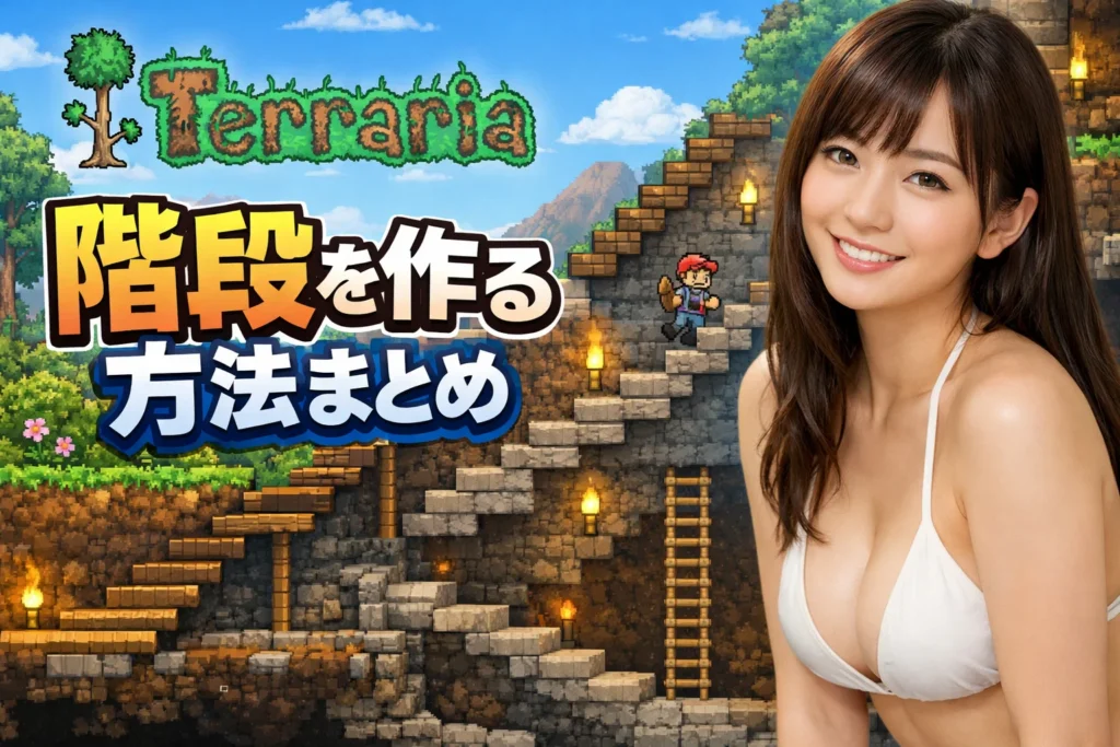 テラリアで階段を作る基本は、プラットフォーム(足場)を置いて、ハンマーで叩いて「階段形状(斜め)」に変形させる方法です。また、スマートカーソル(Smart Cursor)を使うと、環境によっては配置がかなり楽になります。階段はNPCハウスの必須条件では... -