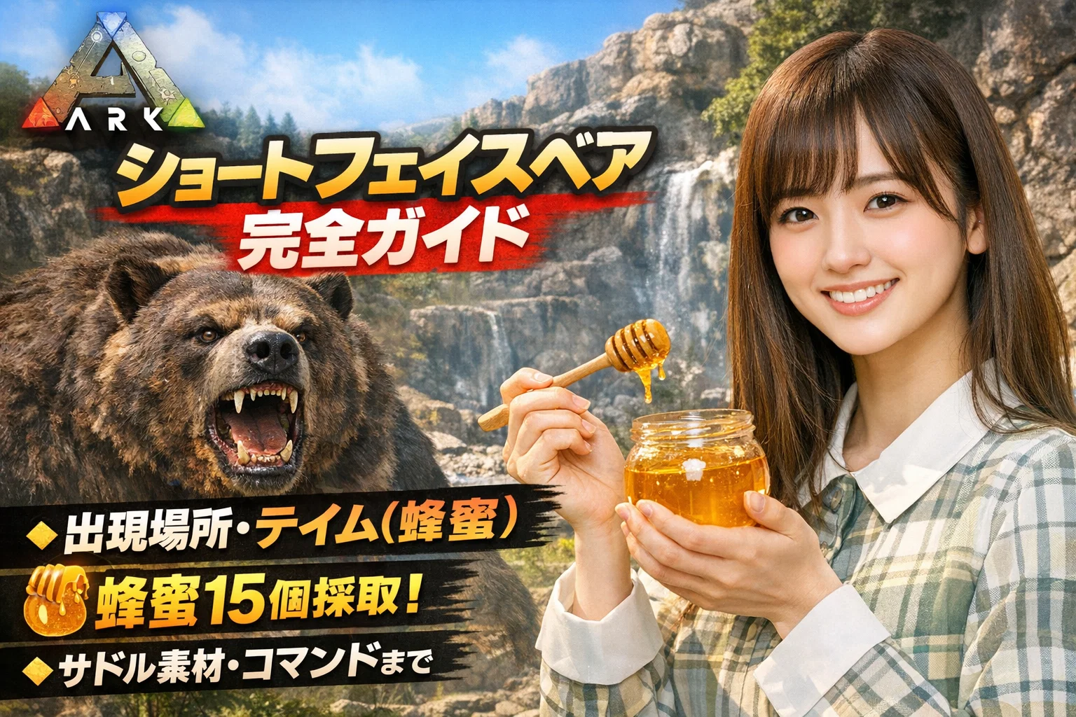 【2026年1月最新】ARK「ショートフェイスベア」完全ガイド|出現場所・テイム(蜂蜜)・蜂蜜15個採取・サドル素材・コマンドまで