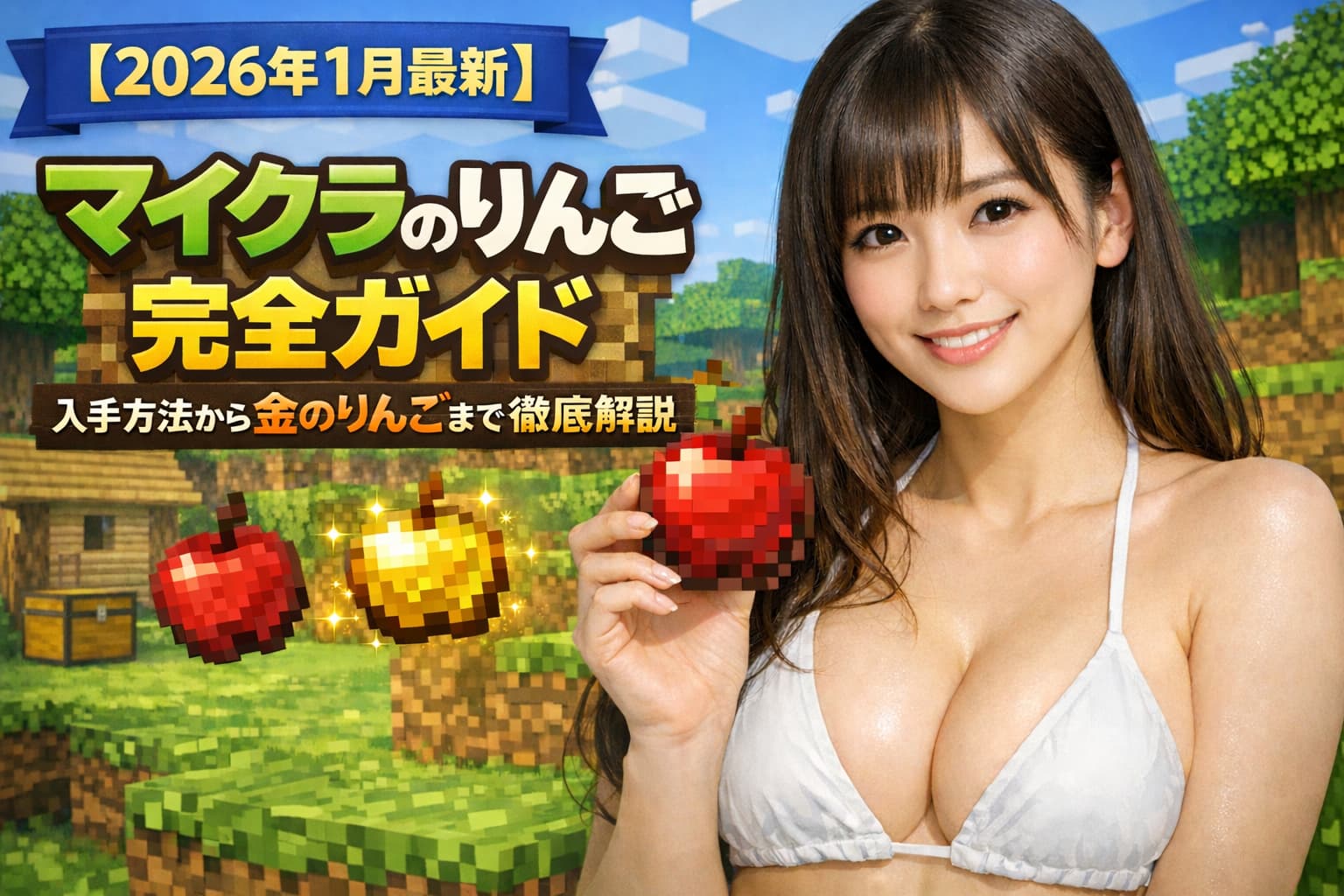 マインクラフトの「りんご」には、通常のりんご/金のりんご/エンチャントされた金のりんごの3種類があります。通常のりんごはオーク系の葉からのドロップや村人取引で量産でき、金のりんごは「りんご1個+金インゴット8個」でクラフト可能です。一方、エンチャントされた金のりんご(通称:ノッチりんご)は現在クラフトできず、各種構造物のチェストや一部の特殊なコンテナから見つかる超レアアイテムです。