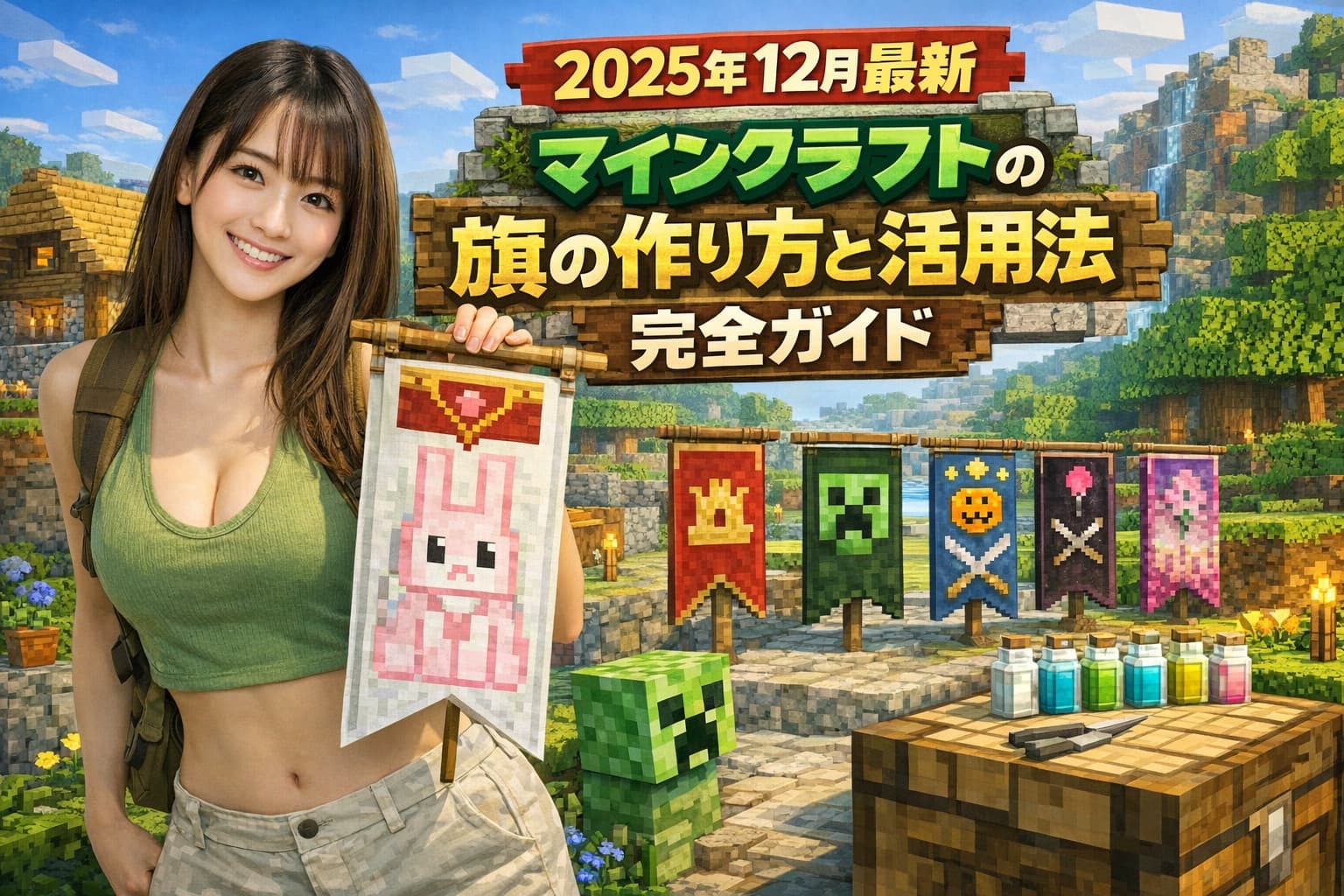 マインクラフトの旗(バナー)は、羊毛6個と棒1本で作れる装飾ブロックです。模様付けは機織り機(Loom)を使うのが最短で、旗+染料(+必要に応じて「旗の模様」アイテム)を組み合わせて最大6層までデザインを重ねられます。完成した旗は拠点の目印・建築装飾はもちろん、盾に模様を転写してマルチプレイでの識別にも活用できます。