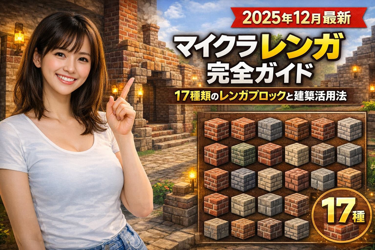 この記事では、建築で特に出番が多い「レンガ系ブロック」を17種類として整理し、作り方・集め方・加工のコツ・建築の使い分けまでをまとめて解説します。