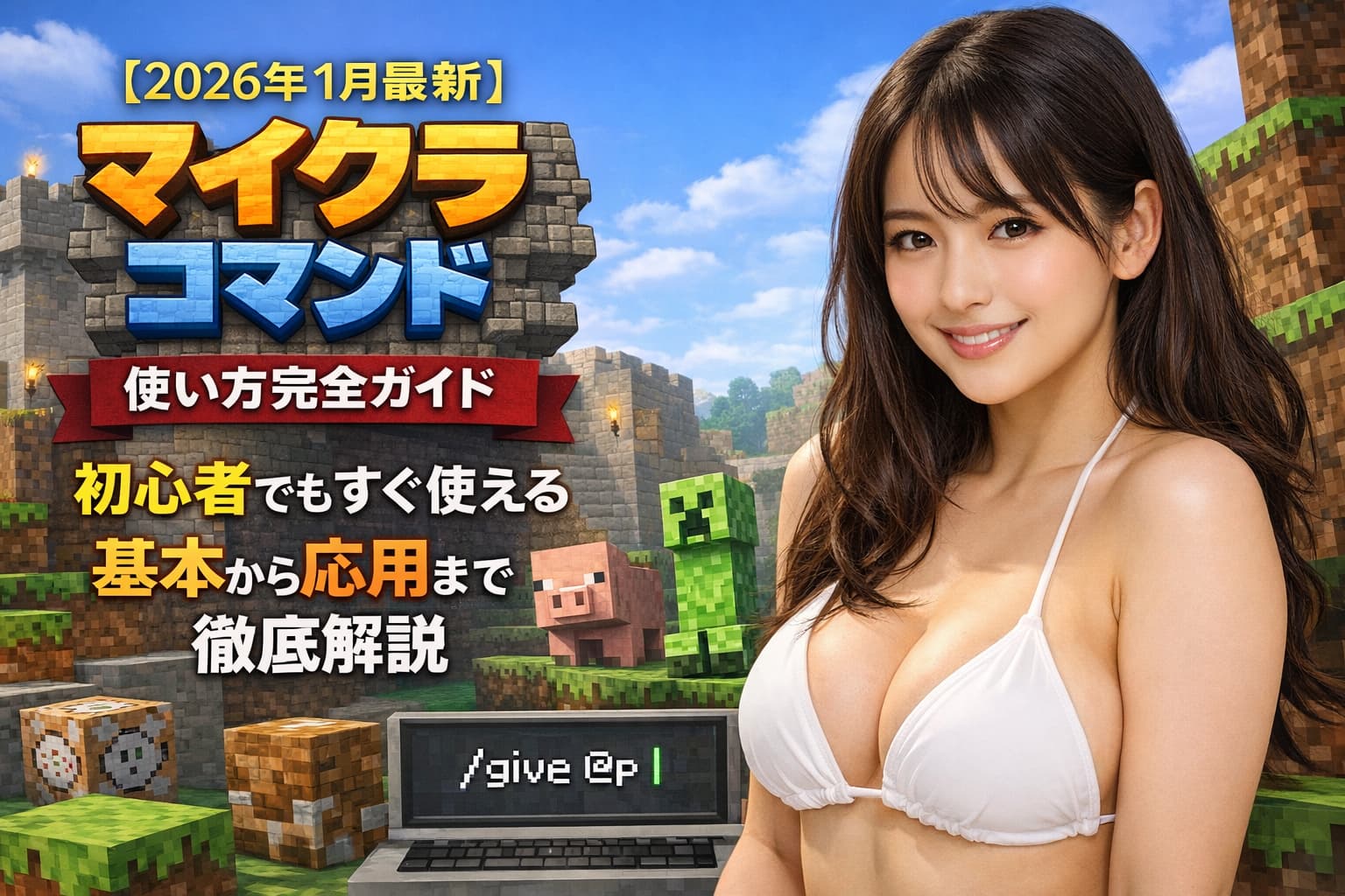 マイクラ(Minecraft)のコマンドは、チャット欄に「/」で始まる命令文を入力することで、時間変更・テレポート・アイテム付与などゲーム内の様々な操作を瞬時に実行できる機能です。Java版・統合版ともにチート許可設定を有効にすれば使用可能で、基本構文「/コマンド名 対象 パラメータ」を覚えるだけで初心者でも簡単に活用できます。