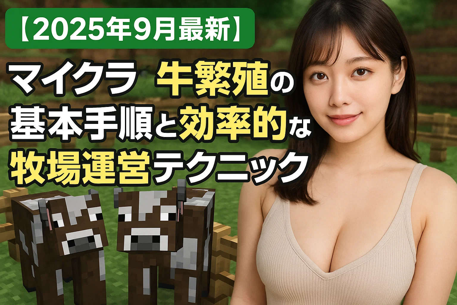 マイクラの牛繁殖は、小麦2個で2匹の大人牛を繁殖させる非常にシンプルなシステムです。5分のクールタイムと20分の成長時間を理解し、効率的な牧場設計を行うことで、食料と素材を安定確保できます。