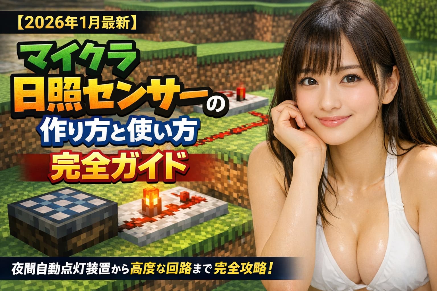 日照センサーは、簡単な街灯から本格的な時間制御・天候検知まで幅広く使える基礎ブロックです。まずは「ランプ+反転センサー」の自動街灯で動作原理を掴み、次に比較器でしきい値を作って安定化させると、応用が一気に広がります。街づくりの快適さが段違いになるので、ぜひ拠点の自動化に取り入れてみてください。