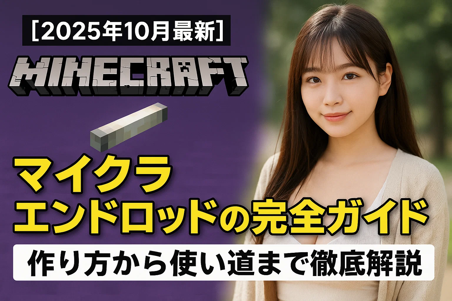 マイクラのエンドロッドは、明るさレベル14の優秀な光源ブロックです。ブレイズロッドと焼いたコーラスフルーツをクラフトするか、エンドシティから直接回収することで入手できます。装飾性に優れ、あらゆる面に設置可能で建築物の照明や装飾に重宝します。