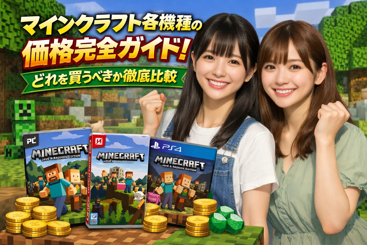 2026年1月現在、マインクラフトの価格はPC版(Java+統合版セット)が3,960円、Nintendo Switch版が3,960円、PlayStation版が2,640円、スマートフォン版がiOSで1,300円、Androidで900円となっています。初心者にはPC版のセットが最もコストパフォーマンスが良く、将来性も高いためおすすめです。