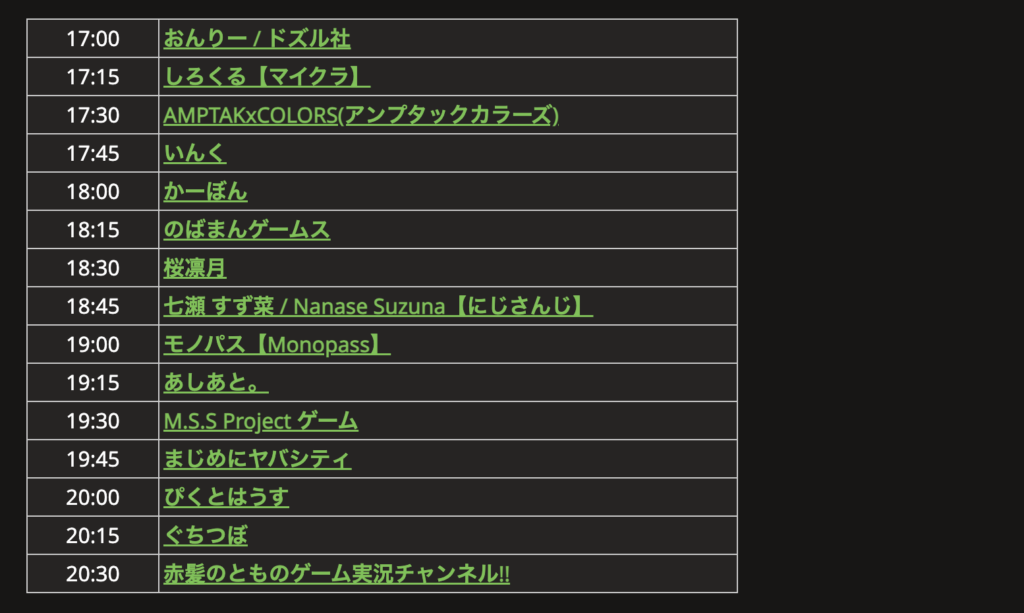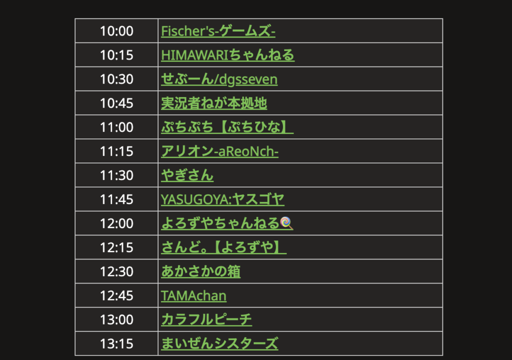 - 推し枠は、公式ページのタイムテーブルからYouTubeへ直行してください。