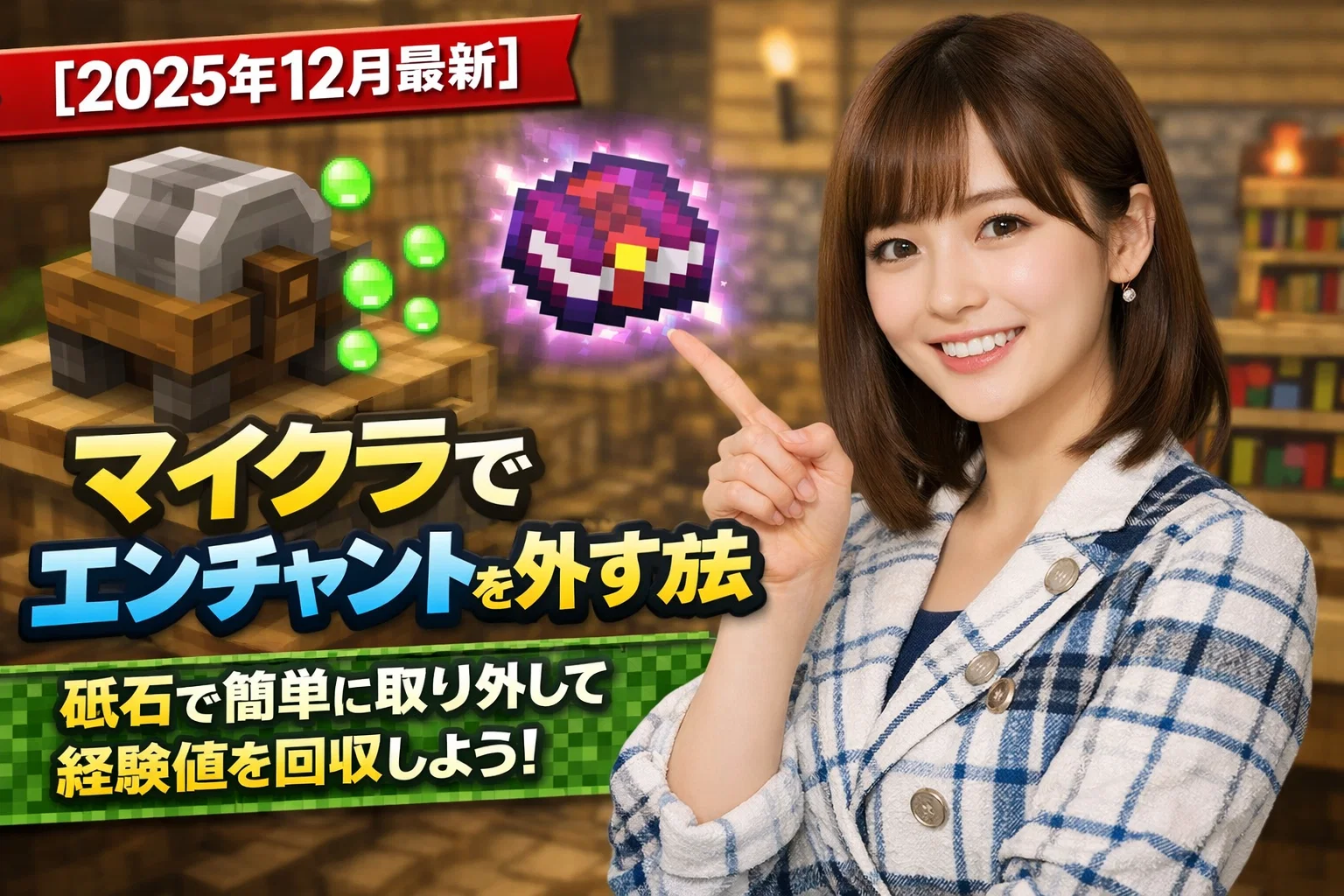 マイクラでエンチャントを外すには「砥石(グラインドストーン)」を使用します。砥石に武器や防具、道具を入れると全てのエンチャントが除去され、一部の経験値が戻ってきます。砥石は村の武器鍛冶屋で入手するか、石のハーフブロック1個・木の棒2本・木材2個で簡単にクラフトできます。
