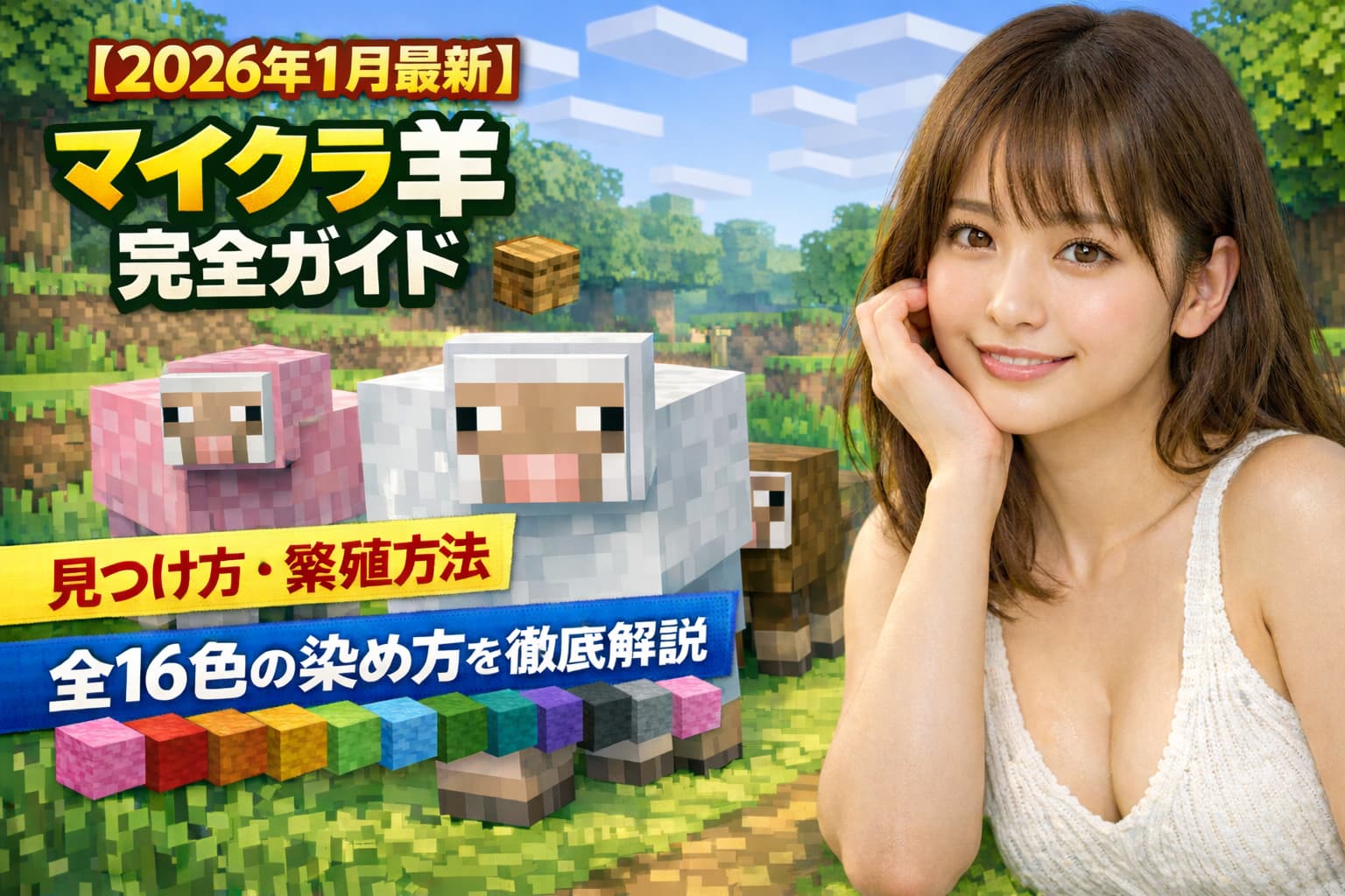 【2026年1月最新】マイクラ羊完全ガイド|見つけ方・繁殖方法・全16色の染め方を徹底解説