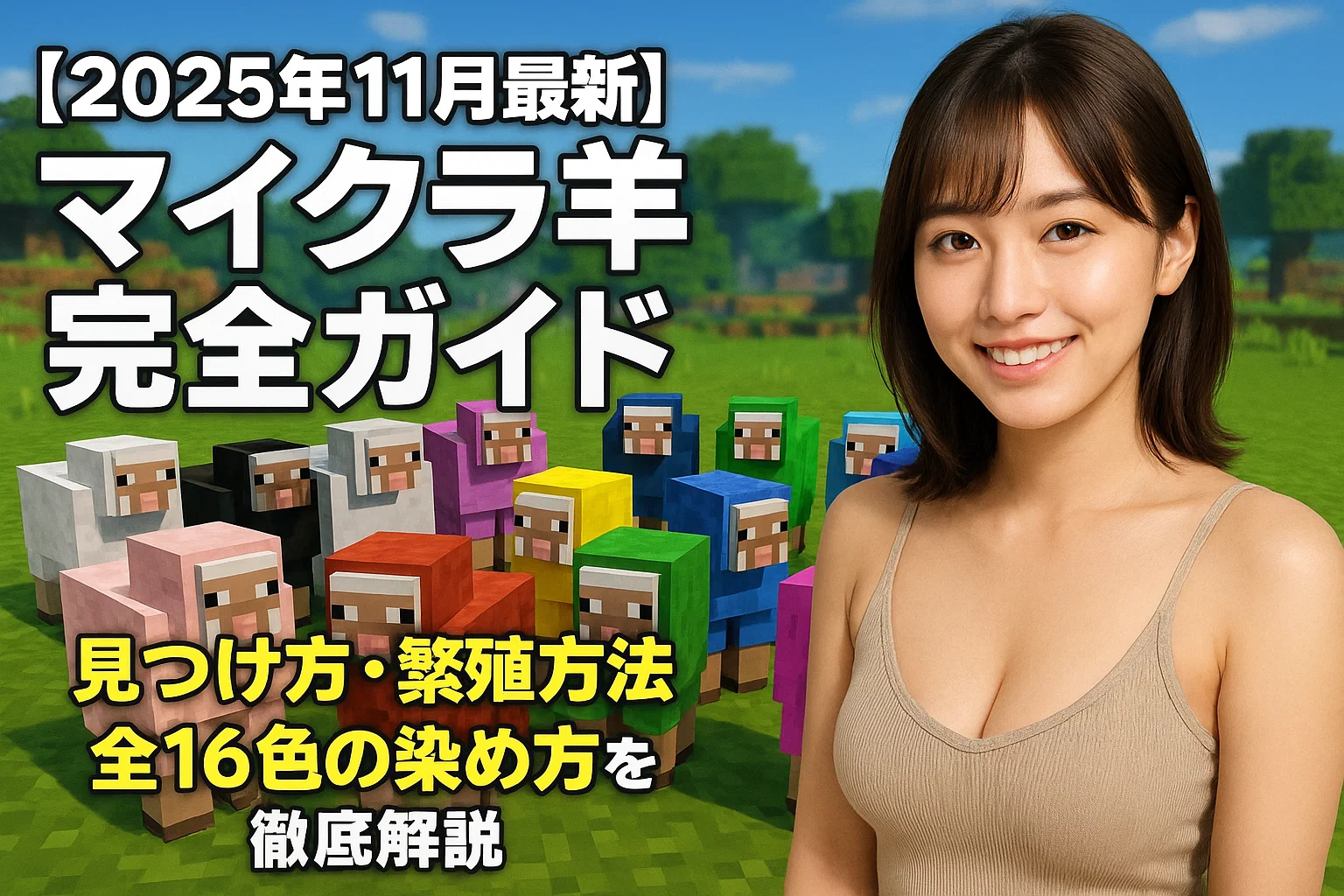 マイクラの羊は、羊毛という重要な資源を提供する欠かせないMobです。草原や森などの明るいバイオームで見つかり、ハサミで刈り取ることで効率的に羊毛を入手できます。小麦2個で繁殖が可能で、染料を使えば全16色に染色できるため、建築やクラフトの幅が大きく広がります。