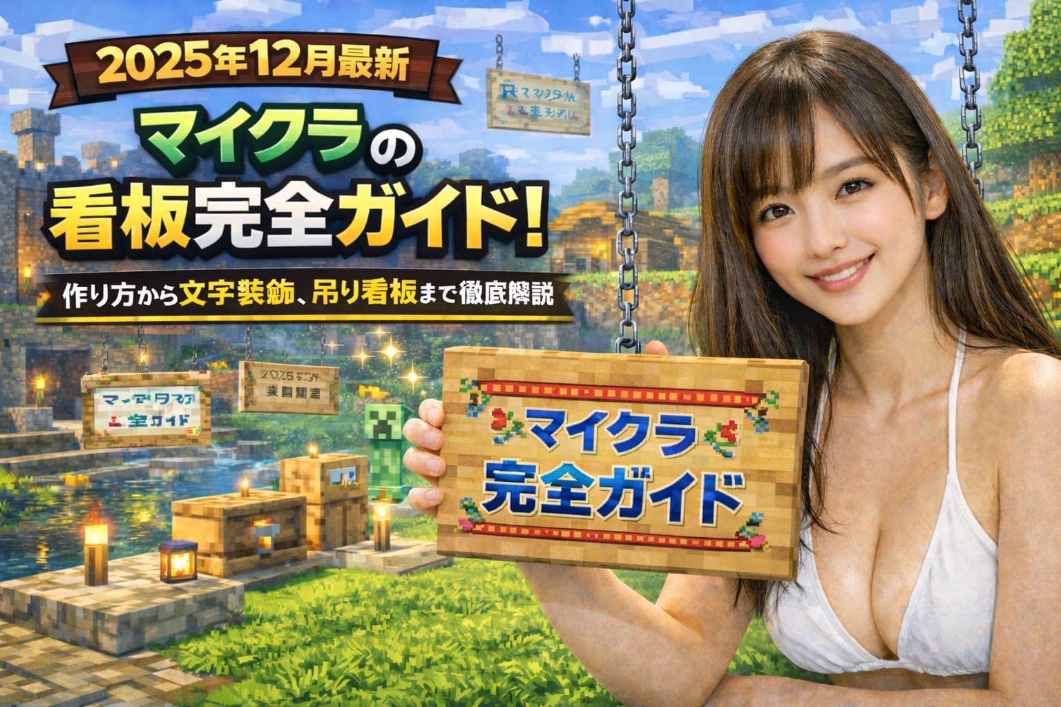 マイクラの看板(通常の看板/吊り看板)は、文字で案内やラベリングができる装飾ブロックです。通常の看板は板材6個+棒1個でクラフトでき、設置時に入力した文字は表・裏それぞれ最大4行(合計8行)まで表示できます。2025年12月現在は、Java版・統合版ともに設置後の再編集や染料での文字色変更、輝くイカスミ(発光する墨袋)での発光表示、ハニカム(蜜蝋)で編集ロックに対応しており、建築の案内板からレッドストーン装置まで幅広く活用できます(目安:Java版 1.21.11/統合版 1.21.131系)。