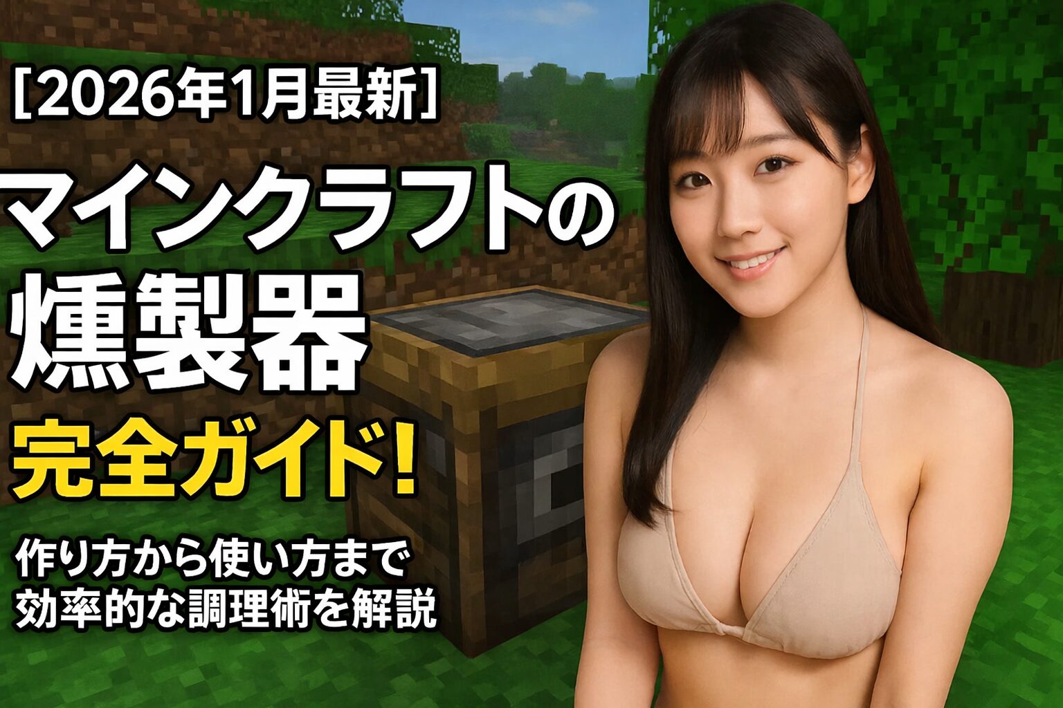 マインクラフトの燻製器は、原木4個とかまど1個で作製できる調理専用ブロックです。食料アイテムをかまどの2倍の速度で調理でき、肉屋の職業ブロックとしても機能します。調理時間が短縮される一方、燃料の消費速度も2倍になるため、効率的な食料準備や村人との取引に活用できます。