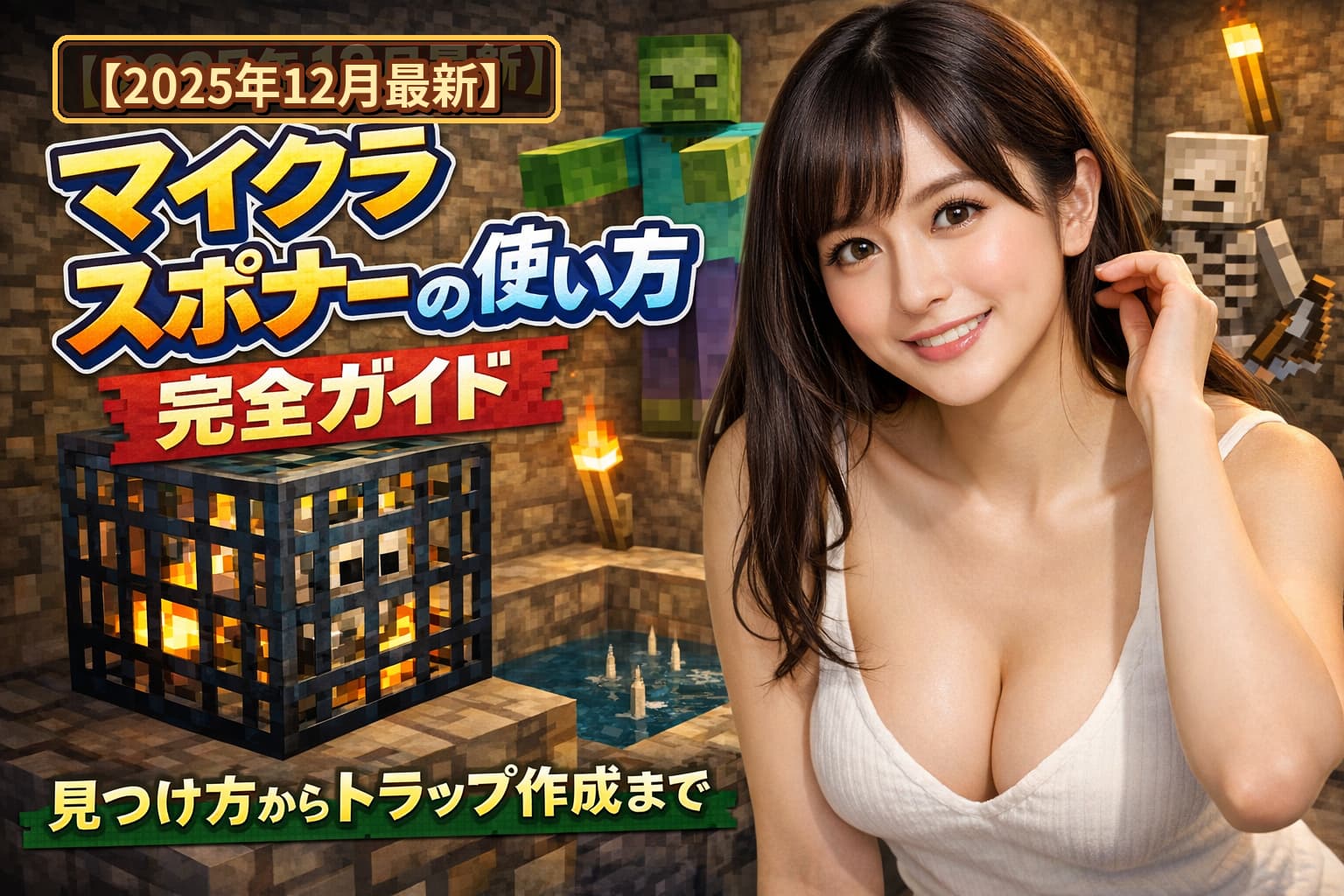 マイクラのスポナーは、ゾンビ・スケルトン・クモなどのMobを継続的に湧かせるブロックで、地下のモンスタールーム(旧ダンジョン)や、1.21で追加された試練のスポナー(トライアルチャンバー内)などが存在します。本記事は2025年12月時点の仕様を前提に、スポナーの仕組み・探し方・トラップの作り方・用途別の最適化まで、元記事の構成に沿って詳しく解説します。