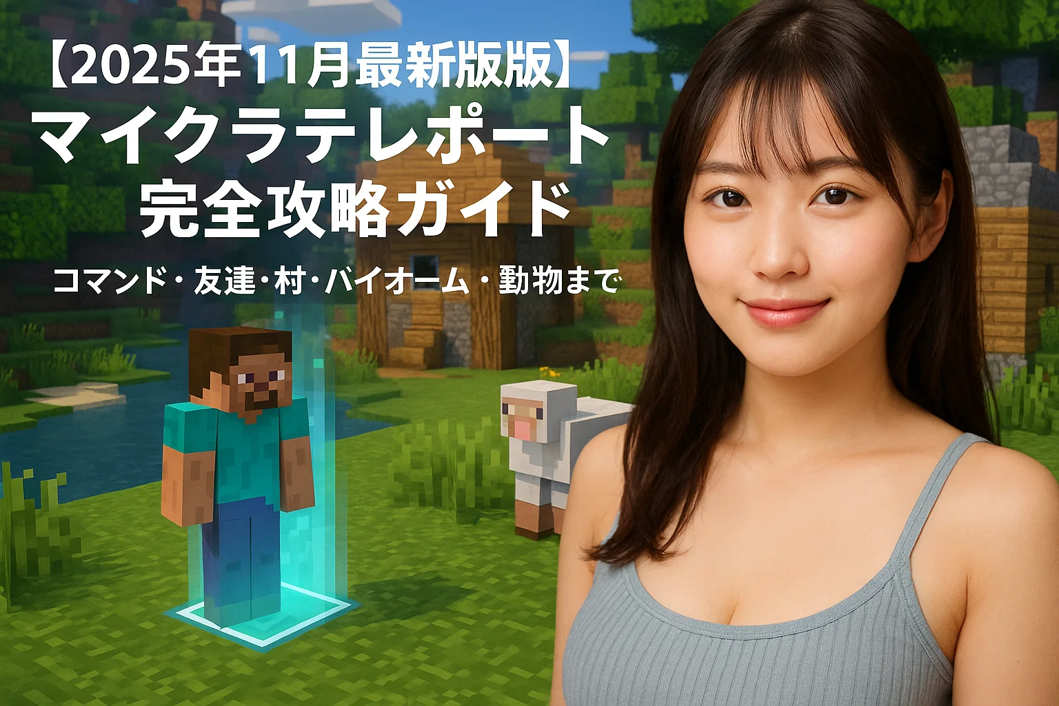 マインクラフトのテレポート(TP)コマンドは、プレイヤーやエンティティを瞬時に別の場所へ移動させる機能です。基本コマンドは「/tp [対象] [座標またはプレイヤー名]」で、Java版・統合版ともに使用可能です。サバイバルモードでもチート許可設定を有効にすれば利用でき、拠点間の移動や建築作業の効率化に役立ちます。