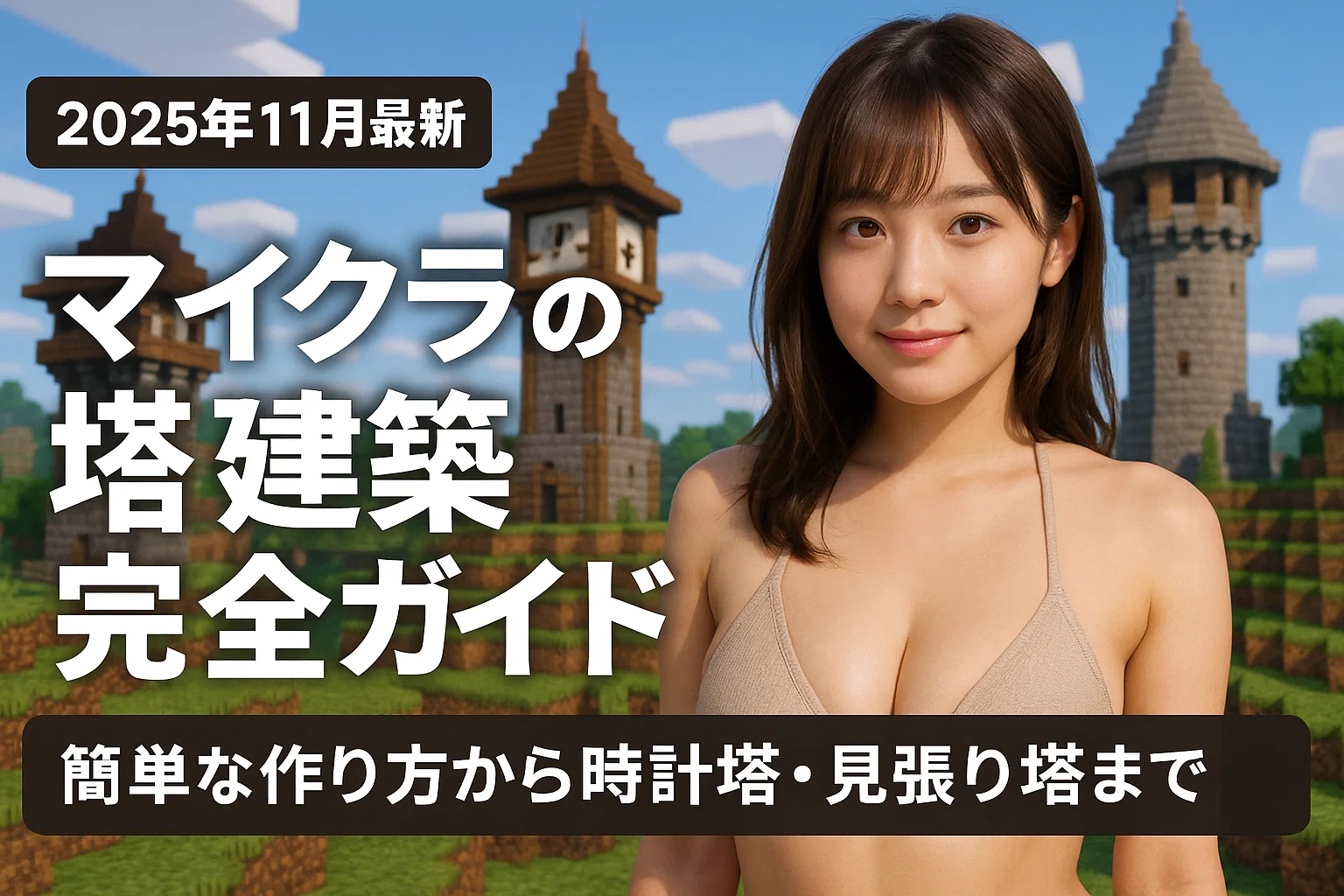 マイクラで塔を作る際は、基礎となる円形・四角形の土台作りから始め、階層ごとに高さを積み上げて屋根で仕上げる流れが基本です。2025年11月現在、最新バージョン1.21.4(統合版1.21.50)では新バイオーム「ペールガーデン」の木材も建築素材として活用できます。初心者は7×7マスの簡単な四角形から始めて、レンガブロックや石レンガを使った基本的な見張り塔から練習するのがおすすめです。時計塔や城の塔など、目的に応じて装飾や機能を追加していきましょう。