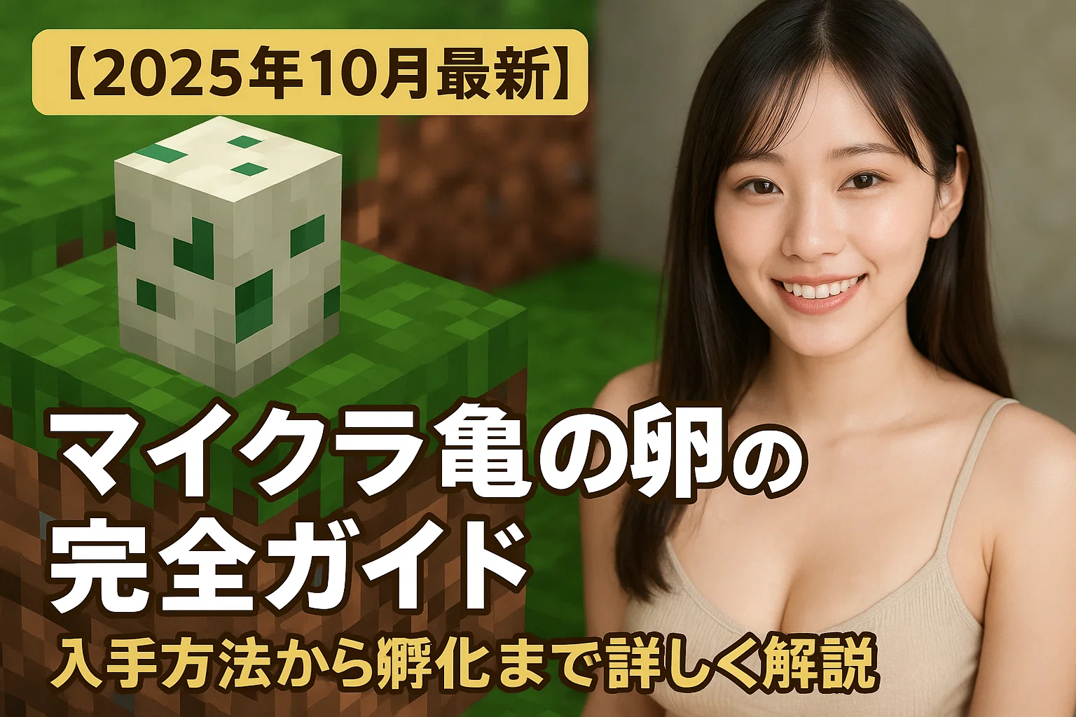 亀の卵は、マインクラフトで子どものカメが誕生する特別なブロックです。Java版では「カメの卵(Turtle Egg)」、統合版では「ウミガメのタマゴ(Sea Turtle Egg)」と呼ばれています。1ブロックの空間に最大4個まで設置でき、時間経過とともに孵化します。