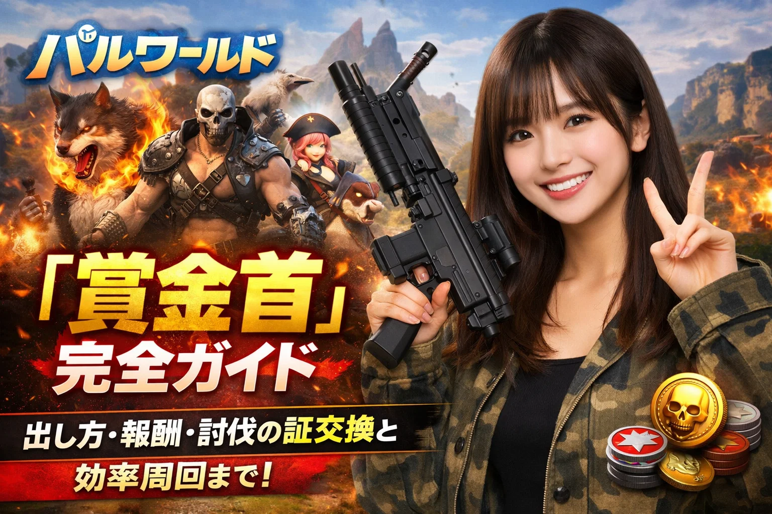 パルワールドの「賞金首」は、マップに表示される討伐対象(人型の賞金首)を倒して「賞金首討伐の証」を集め、村や街の“自警団の指名手配係”で報酬と交換するコンテンツです。